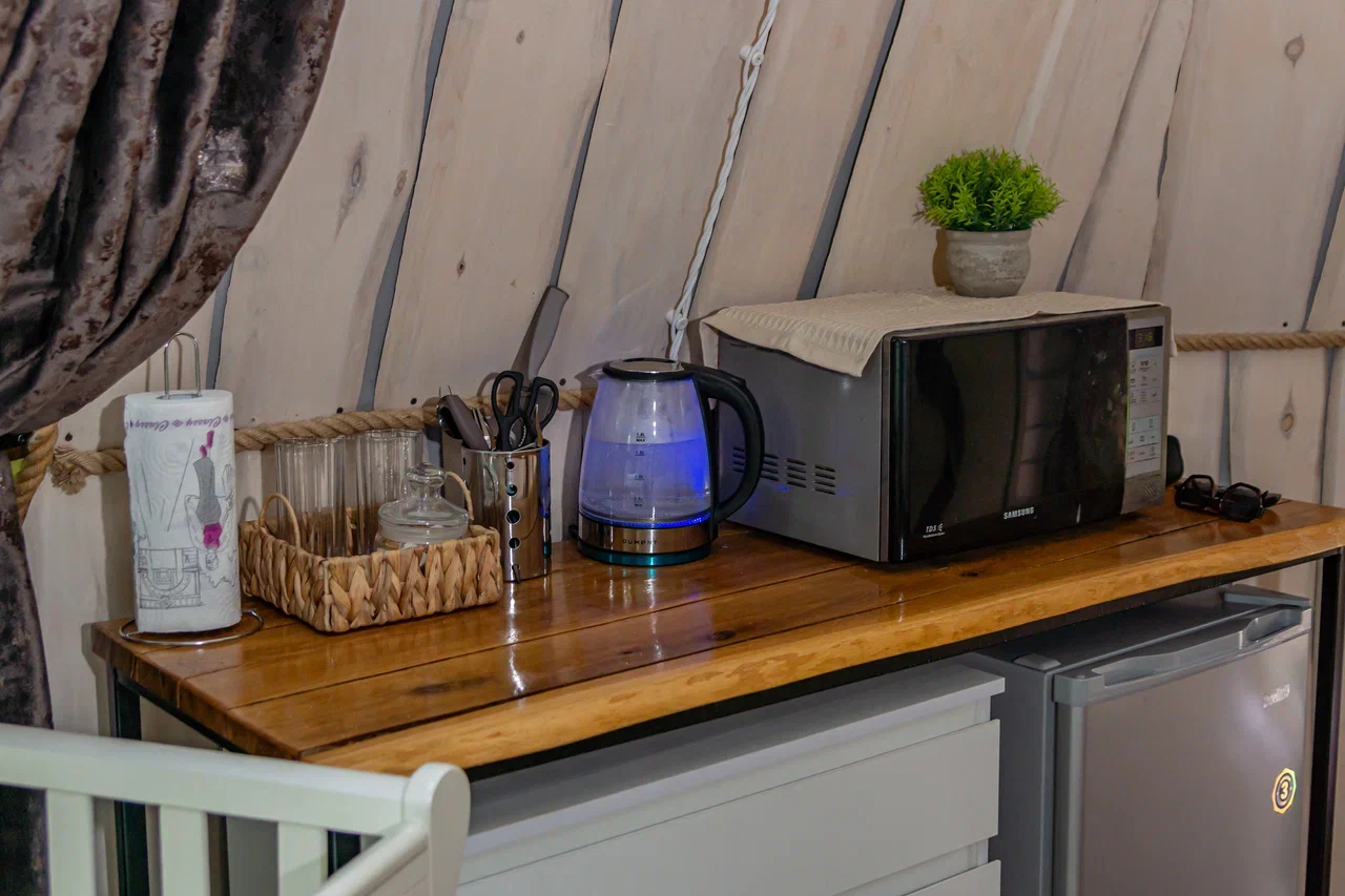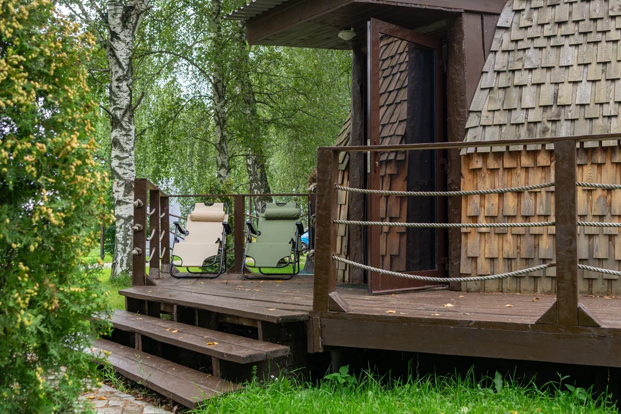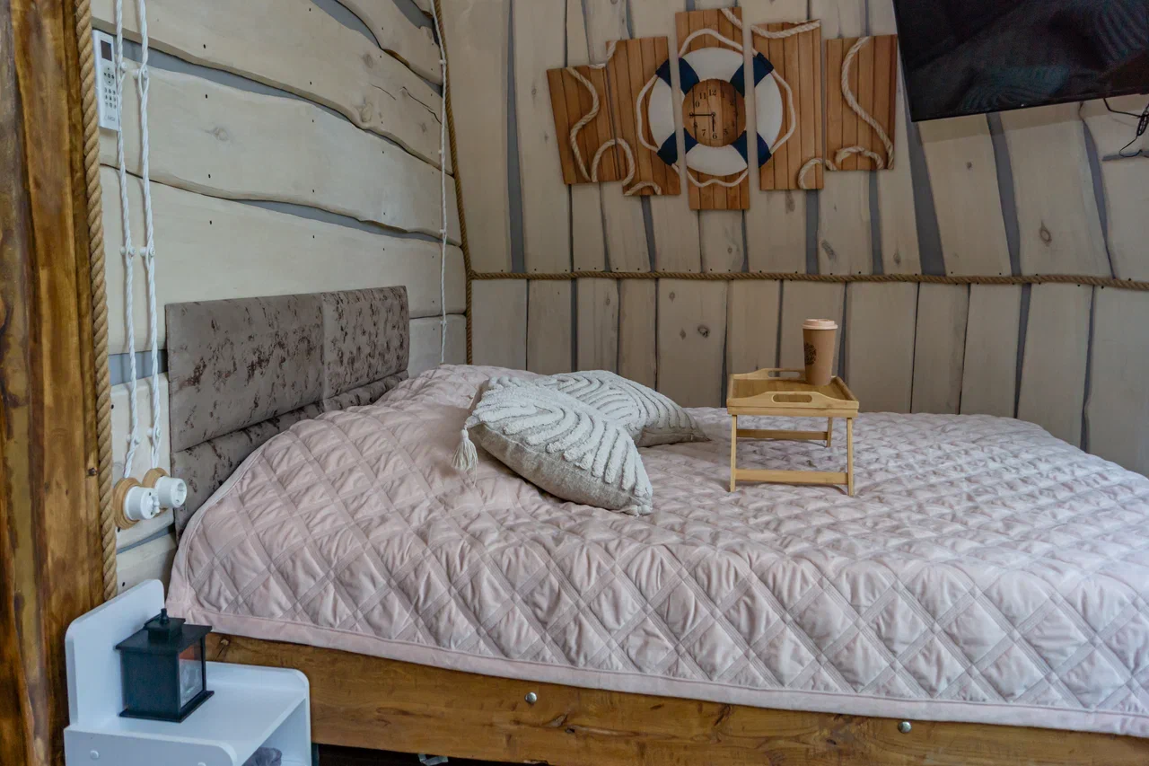 Идеально подойдет для спокойного и уютного отдыха молодой паре или семье с детьми. Дом рассчитан от 1 до 3 человек. Большое панорамное окно, комфортная двухспальная кровать, мини-кухня со всем необходимым, санузел и душ.